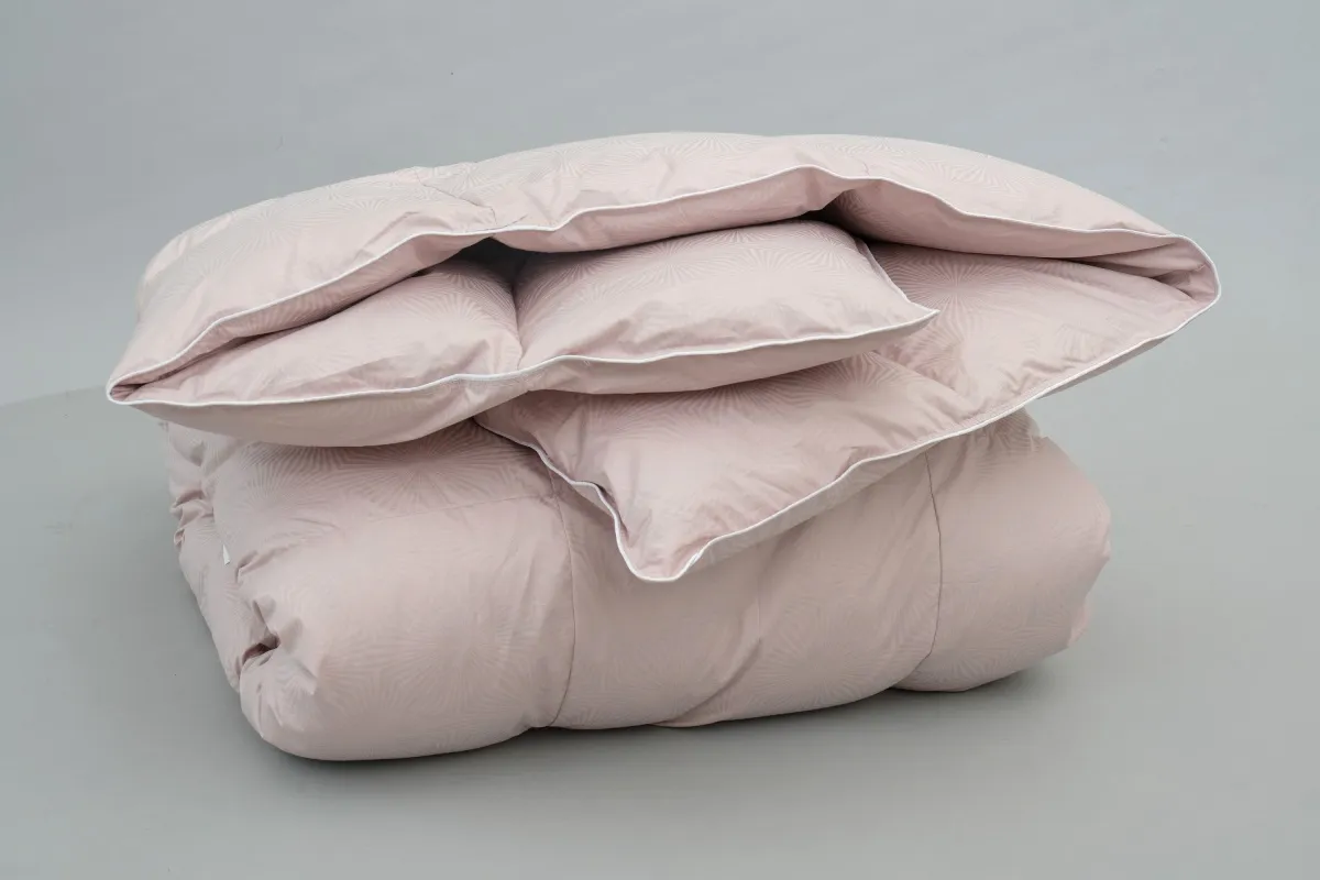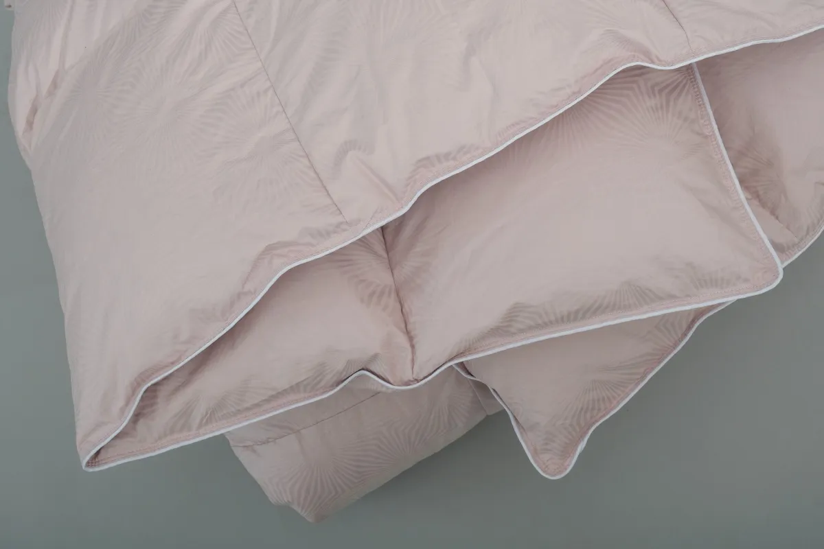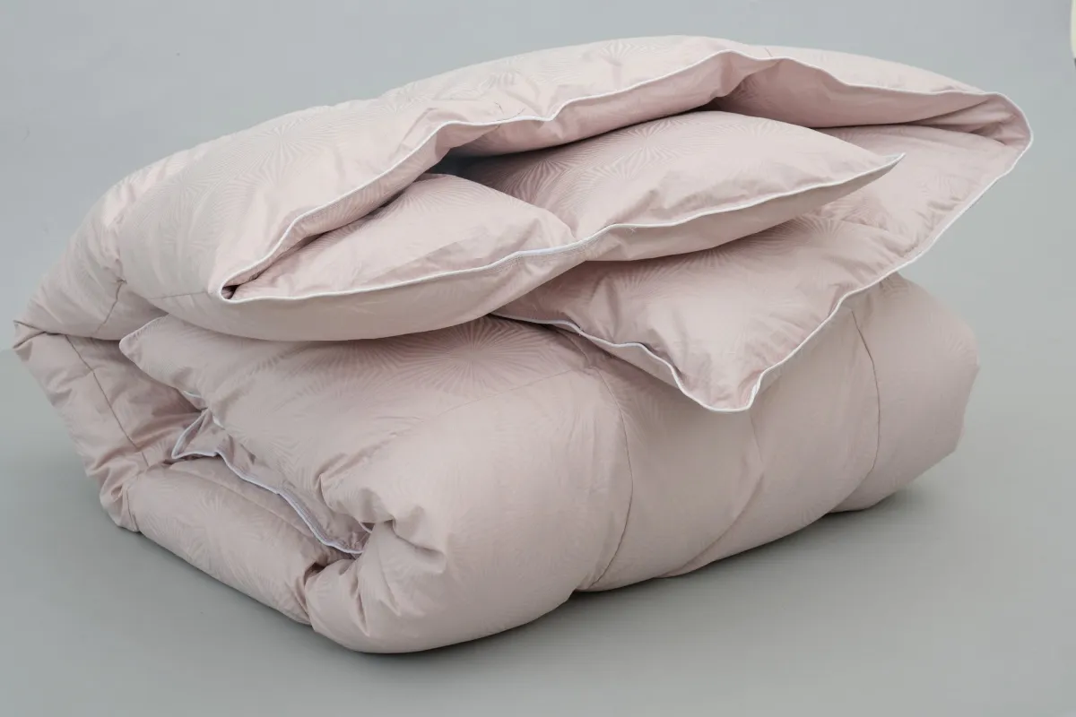 Чехол выполнен из изысканного батиста-жаккарда из 100% хлопка, отличающегося мягкой шелковистой текстурой, благородным блеском и высокой воздухопроницаемостью. Наполнение состоит из 100% пуха улучшенной обработки премиального класса, который проходит многоступенчатую современную переработку, обеспечивая исключительную чистоту, лёгкость и долговечность. Этот пух отличается особой воздушностью, нежностью и мягкостью, даря ощущение невесомости и природного тепла. Кассетная стёжка надёжно фиксирует наполнитель и равномерно распределяет его по всему изделию, предотвращая смещение и сохраняя идеальную форму.