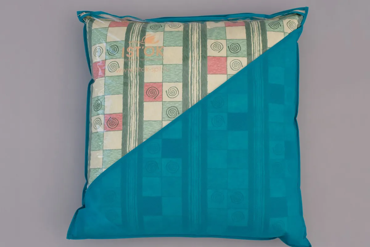 Чехол выполнен из прочного инлета из 100% хлопка с лёгким «хрустящим» эффектом, который приятно шуршит и надёжно удерживает наполнитель внутри. В качестве наполнителя используется тщательно очищенный и переработанный на современном оборудовании микс пуха и пера, обеспечивающий оптимальное сочетание мягкости и упругой поддержки.