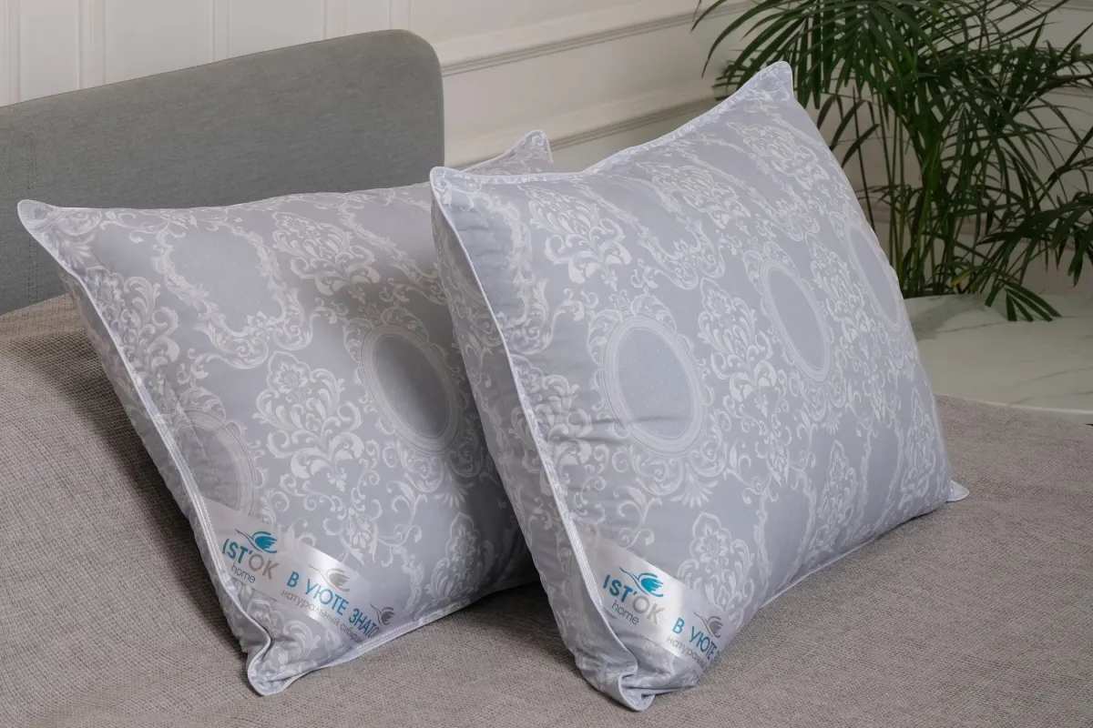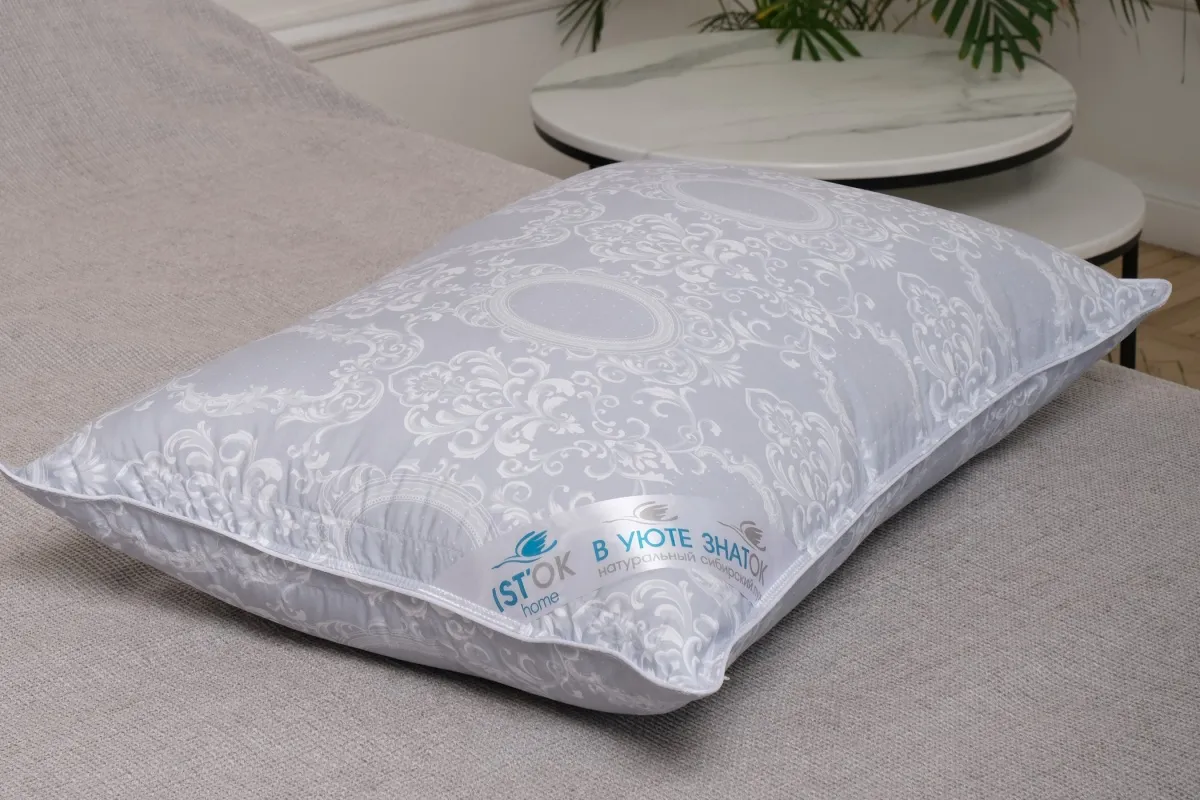Уникальная трёхкамерная конструкция объединяет мягкость и поддержку: верхний и нижний слои наполнены отборным пухом, создающим воздушное облако комфорта, а средний слой из пера и высокотехнологичного пуха придаёт подушке упругость и помогает сохранять форму, обеспечивая естественное положение головы и шеи во время сна.