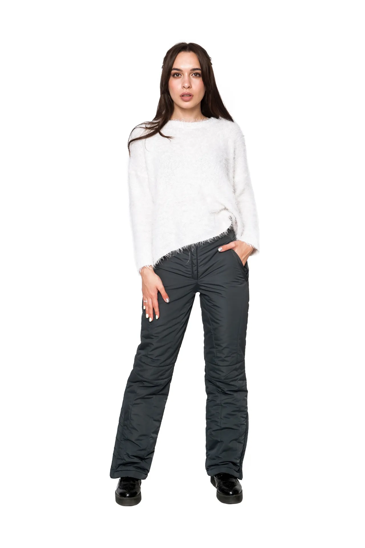 Описание: Женские утеплённые брюки — практичное и стильное решение для зимнего сезона. Модель представлена в двух универсальных цветах — чёрном и сером, которые легко сочетаются с верхней одеждой и обувью, позволяя создавать комфортные повседневные и более собранные образы.