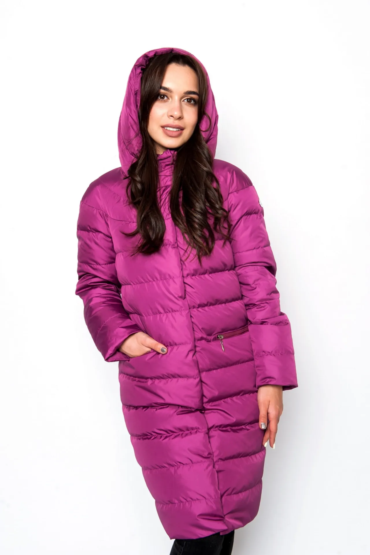 Прямой удлиненный крой визуально стройнит фигуру, позволяя свободно комбинировать пуховик с джинсами, брюками или теплым платьем. Удобный капюшон с высоким воротником защищает голову и шею от ветра и снега, а застежка на молнию с планкой препятствует проникновению холодного воздуха.