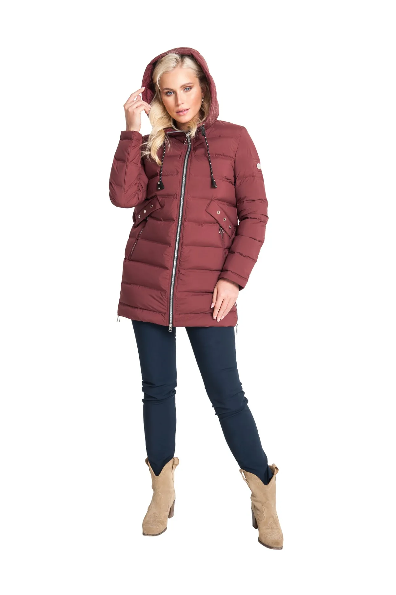 Описание: Куртка «Хельга» – стильная и практичная модель для межсезонья, обеспечивающая надёжную защиту и комфорт при температуре до –10 °C. Утеплитель из 100% натурального пуха создаёт лёгкий, но эффективный барьер от холода, позволяя чувствовать себя уютно даже в переменчивую погоду поздней осени или ранней весны. Верх выполнен из прочного влагозащитного материала с мягкой матовой фактурой, устойчивой к ветру и кратковременным осадкам. Прямой удлинённый крой прикрывает бёдра и создаёт дополнительную защиту от холода, а регулируемый капюшон с высоким воротником надёжно удерживает тепло и оберегает от пронизывающих порывов ветра. Двухзамковая молния с планкой предотвращает проникновение холодного воздуха, а удобные карманы с декоративными клапанами сохраняют руки в тепле и обеспечивают место для необходимых мелочей. Лаконичная горизонтальная стёжка визуально стройнит и придаёт изделию современный аккуратный силуэт. Куртка «Хельга» легко комбинируется с джинсами, брюками или более женственными нарядами, создавая элегантные образы для активных прогулок, поездок и повседневных дел. Это универсальное решение для тех, кто ценит тепло, лёгкость и безупречный внешний вид в прохладный сезон.