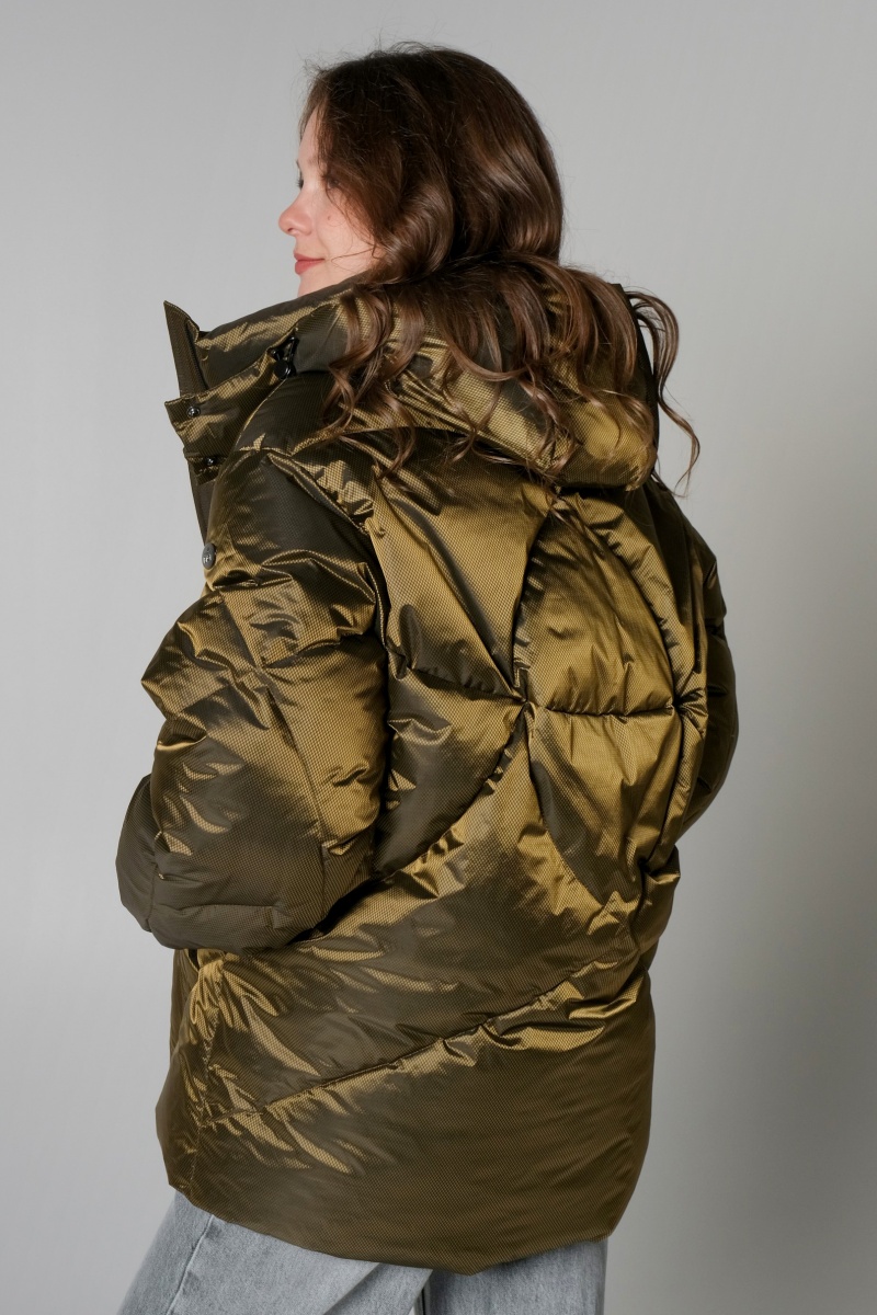 Высокий воротник-стойка и глубокий капюшон обеспечивают надежную защиту от ветра и снегопада, а регулируемые кулиски позволяют подстроить посадку под индивидуальные предпочтения. Мягкий, но прочный верхний материал с лёгким благородным блеском устойчив к влаге и непогоде, сохраняя безупречный вид даже в условиях городской зимы.