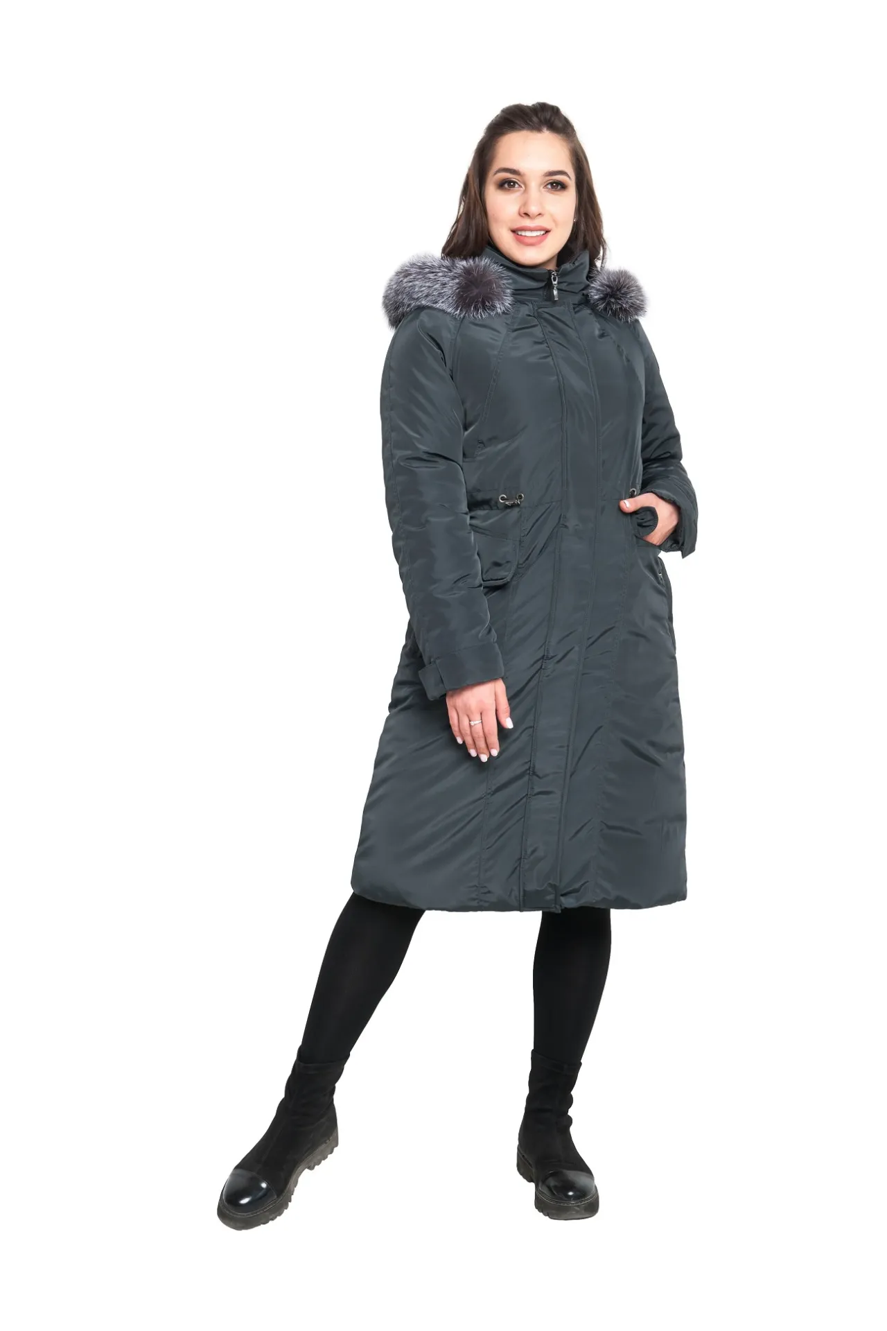Несъемный капюшон с роскошной опушкой из меха песца не только надежно защищает от ветра и снега, но и придает образу изысканность. Мягкий, объемный мех красиво обрамляет лицо, подчеркивая женственность и добавляя модели статусный, благородный акцент.