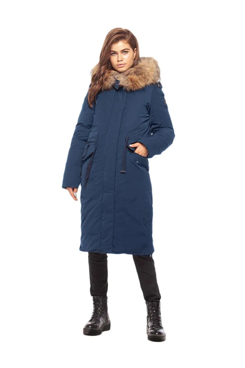 Несъёмный капюшон с натуральной опушкой из меха енота защищает от ветра и холода, создавая дополнительный уют в непогоду. Мех выглядит объёмно и благородно, подчёркивая статусный и аккуратный внешний вид модели.