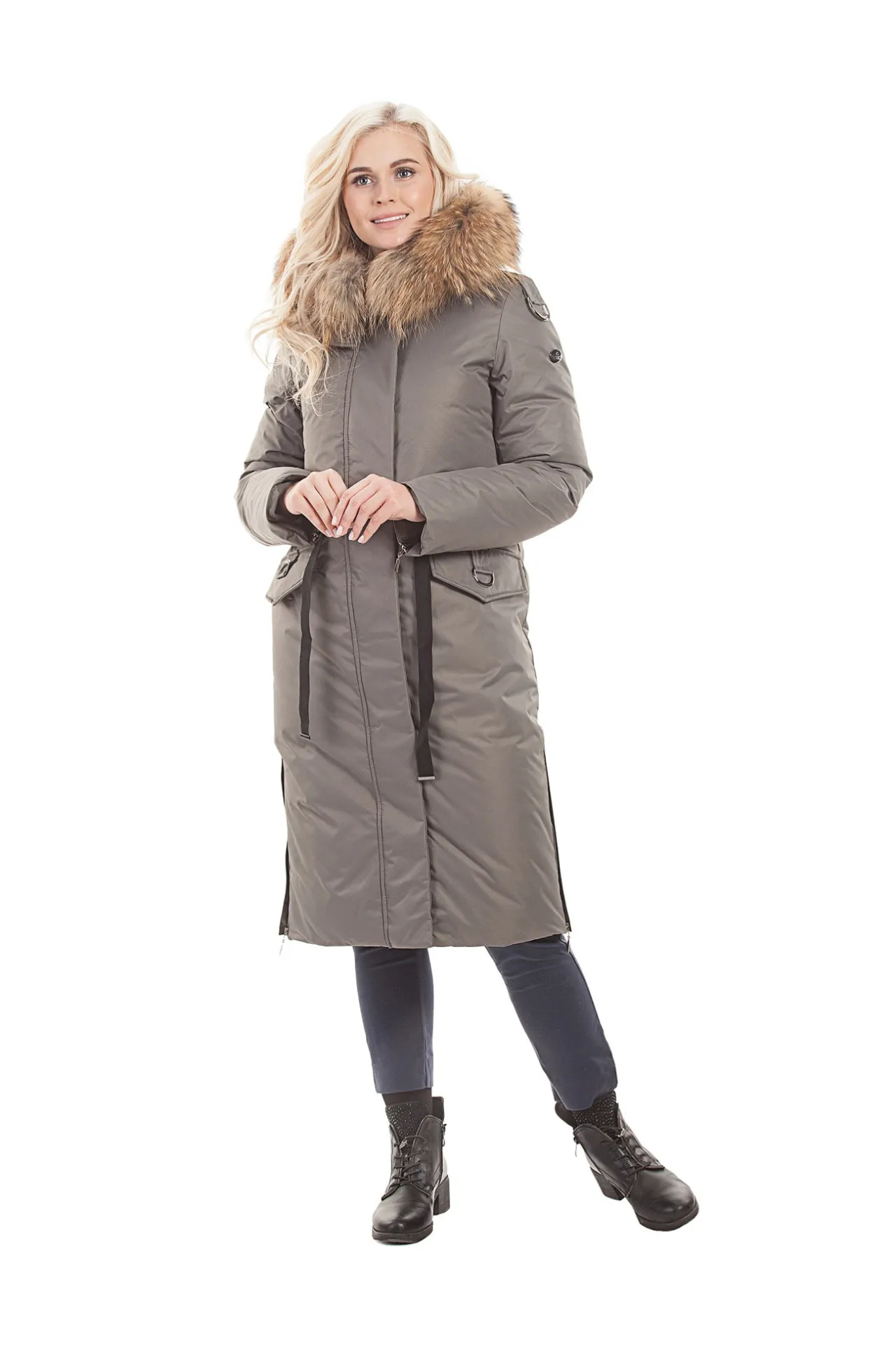 Несъёмный капюшон с эффектной опушкой из меха енота надёжно защищает от ветра, снега и мороза, создавая дополнительное ощущение уюта. Мех придаёт модели благородный, завершённый вид и подчёркивает статусность изделия. Высокий воротник и продуманный крой помогают сохранять тепло даже в ветреную погоду.