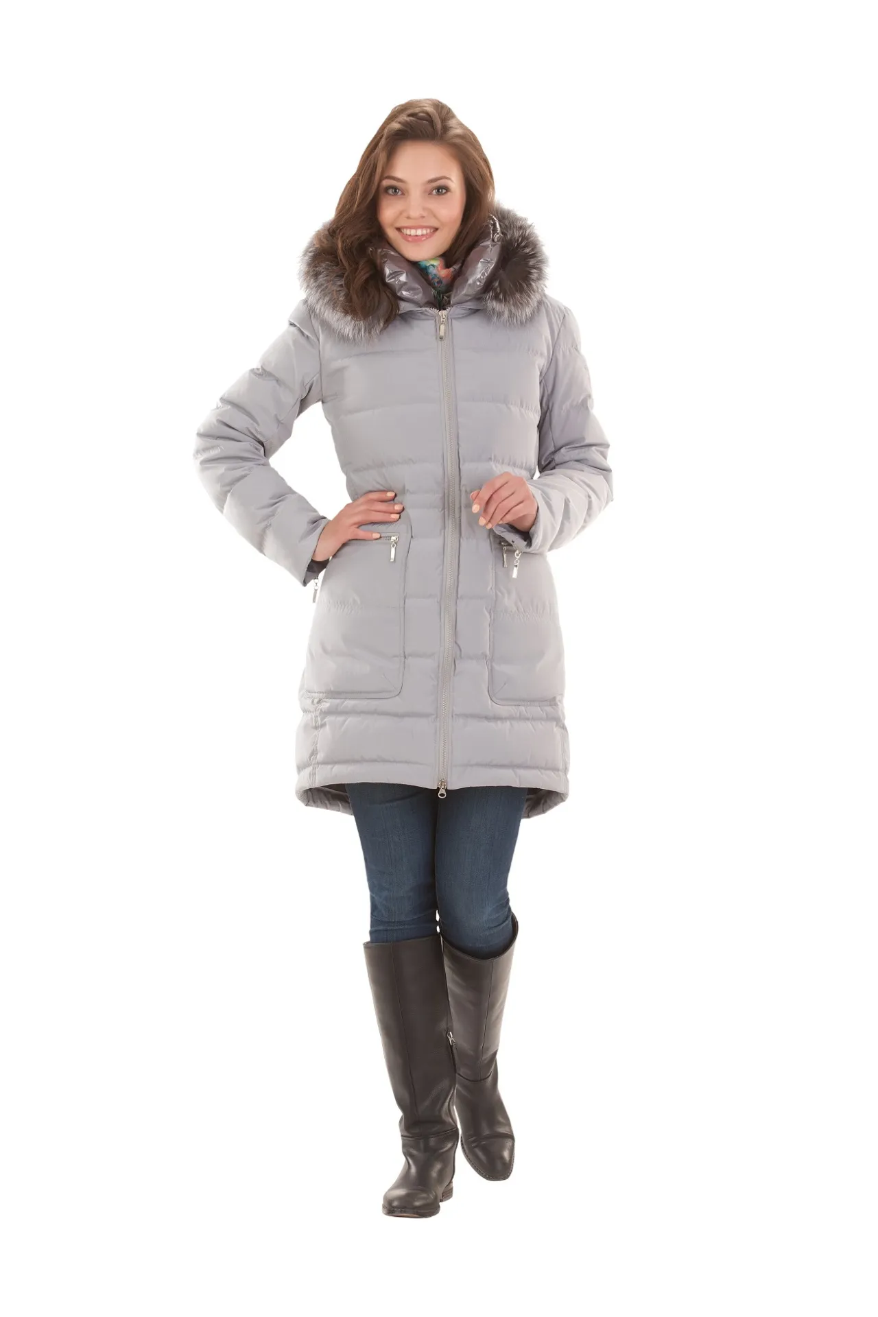 Несъемный капюшон дополнен роскошной отделкой из чернобурой лисы, которая придает образу выразительность, женственность и благородный акцент. Мех густой, объемный и отлично защищает от ветра. Прямой силуэт, аккуратная стежка и продуманные детали создают элегантный внешний вид и комфортную посадку.