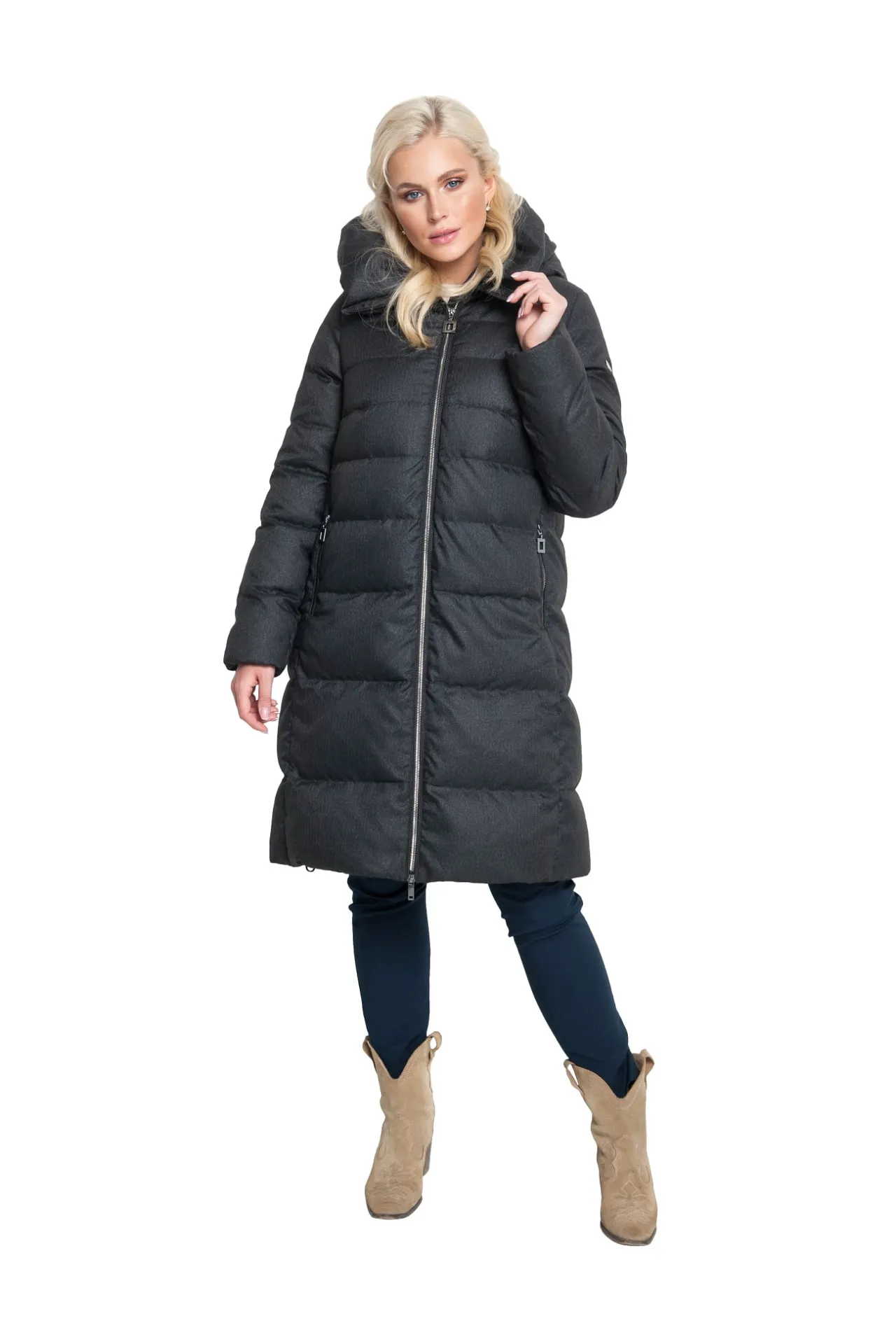 Модель выполнена в удлиненном крое, что делает ее практичной и функциональной: она надежно прикрывает бедра и защищает от ветра и холода. Лаконичная стежка добавляет аккуратности и визуально стройнит фигуру, а современный силуэт делает пуховик универсальным решением для любого образа. Высокий воротник и объемный капюшон обеспечивают дополнительное тепло и комфорт, создавая уют даже в самую неблагоприятную погоду.