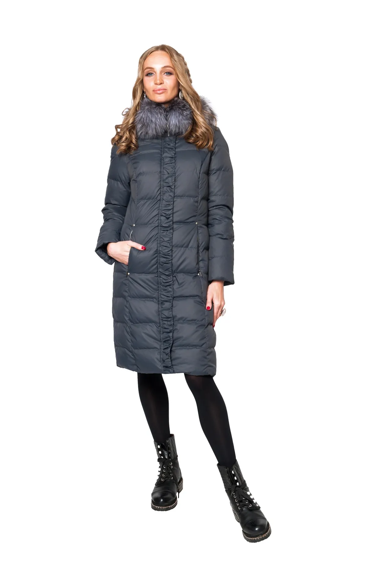 Модель оснащена несъёмным капюшоном с опушкой из песца. Натуральный мех не только придаёт образу благородство и статусность, но и надежно защищает лицо и шею от ветра и холода. Капюшон плотно прилегает и создает дополнительное ощущение уюта в зимнюю непогоду.