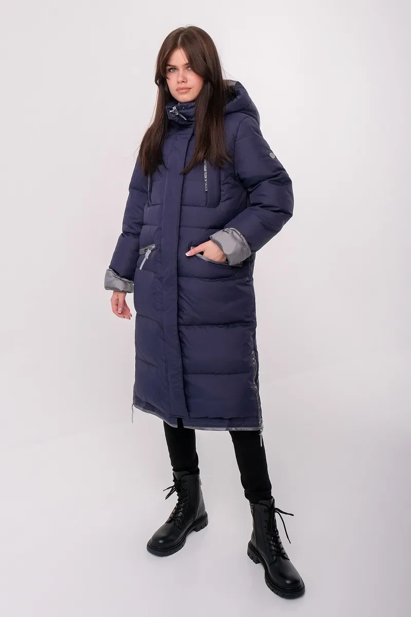 Пуховик представлен в двух универсальных оттенках: светло-сером и темно-синем. Эти цвета легко вписываются в любой гардероб и подойдут как для повседневных прогулок, так и для деловых образов. Современный дизайн в лаконичном исполнении подчеркивает женственность, оставаясь при этом сдержанным и универсальным.