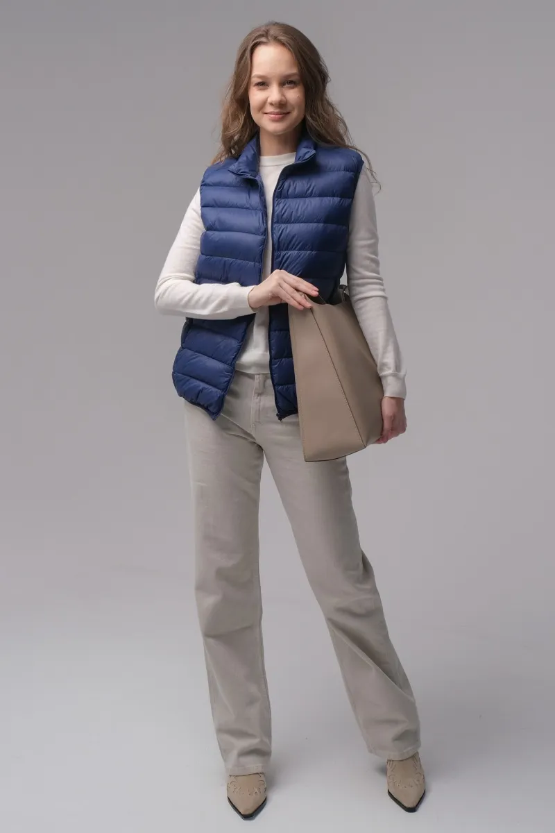 В качестве утеплителя используется 100% натуральный пух, благодаря чему жилет отлично сохраняет тепло, оставаясь при этом практически невесомым. Комфортный температурный режим — до +5 °C позволяет носить модель прохладным вечером, ранним утром или в ветреную погоду, не перегружая образ объемной верхней одеждой. Жилет удобно надевать поверх свитеров, водолазок, худи или легких платьев.