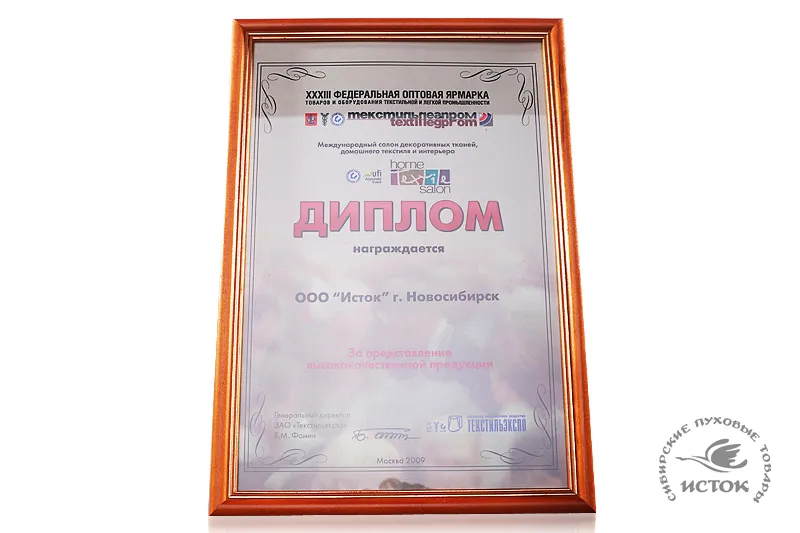 - Дипломы Федеральной оптовой ярмарки легкой промышленности "ТекстильЛегПром", г. Москва.